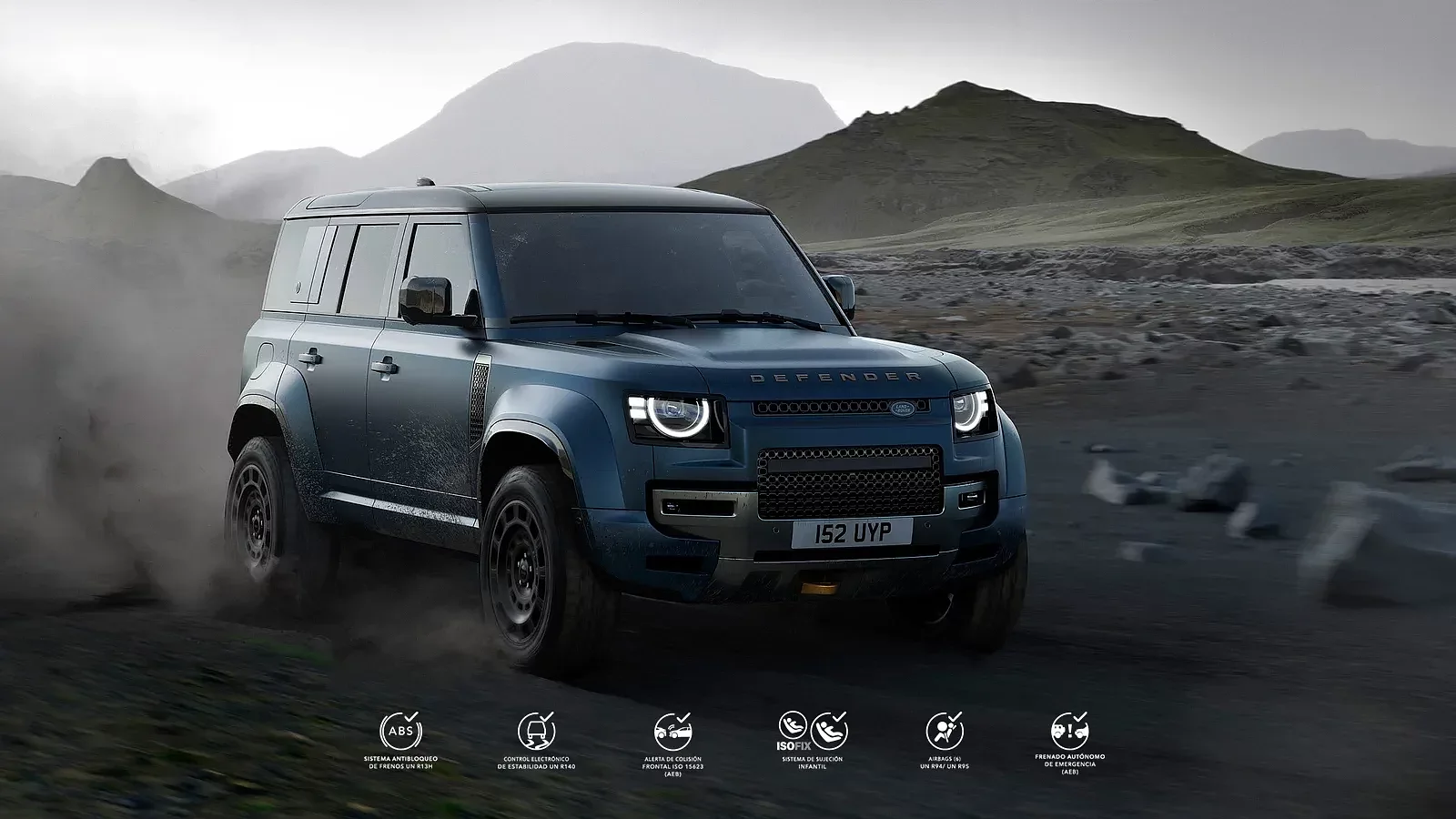 El modelo mostrado es Defender OCTA Black 26MY con especificaciones globales, con características y accesorios opcionales. La disponibilidad y las especificaciones varían según el mercado; consulta con tu distribuidor local. Las secuencias todoterreno fueron grabadas en terrenos privados con todos los permisos correspondientes.